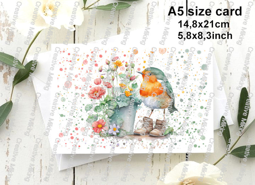 A beautifully printed A5 greeting card designed to pair perfectly with your mulberry papers — ideal as a matching finishing touch for gift sets or as a standalone card to sell or give.