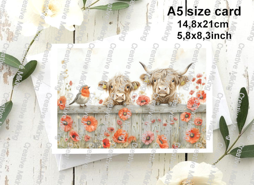RP4875a - Highland Cows with Robin